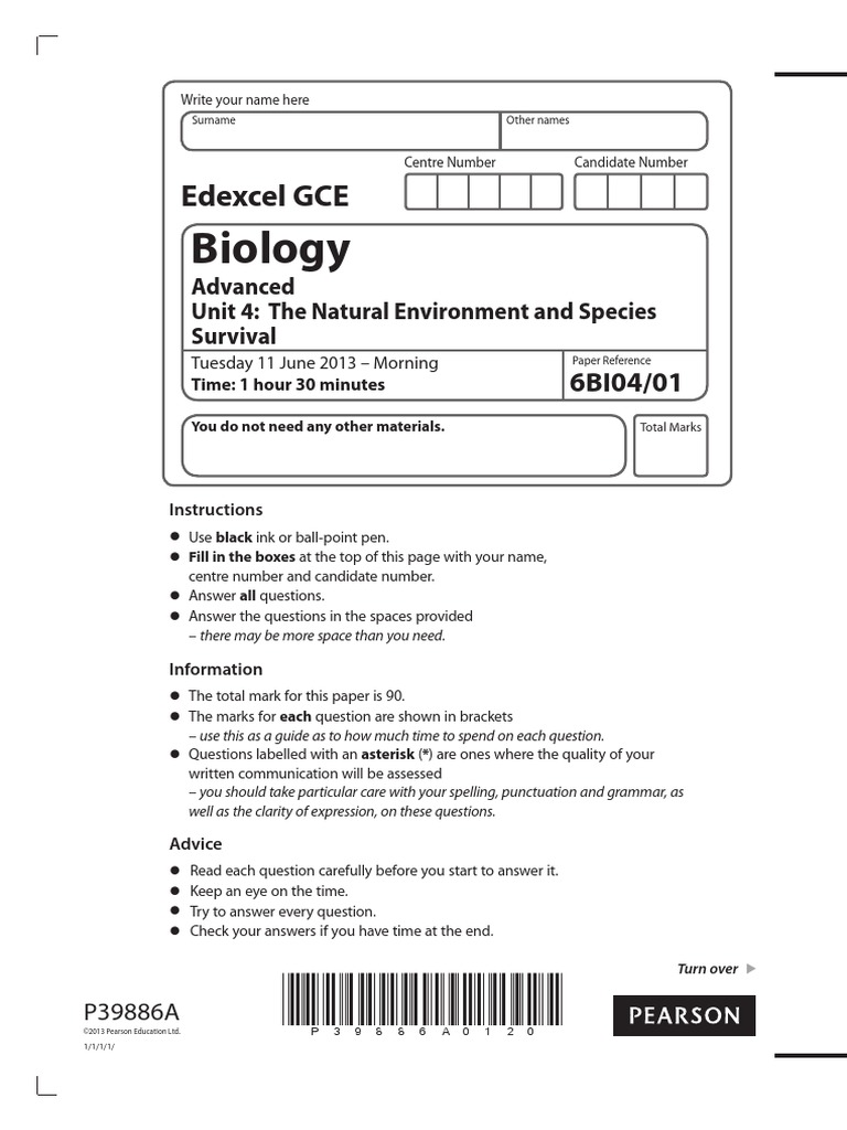 Pearson Edexcel Level 3 Gce Biology B Past Papers Free Download Pdf