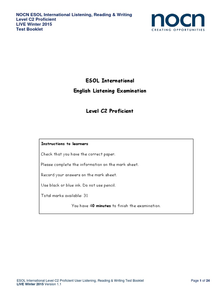 And of course only a few bold students had the nerve to do this. NOCN ESOL International Listening Proficient Level C2 Examination Paper Part 1 You will hear ten sentences twice. Please note that NOCN Group will be following the guidance issued by the ESFA IfATE Ofqual CCEA Regulation QAA and Qualifications Wales and will update our customers as things change.