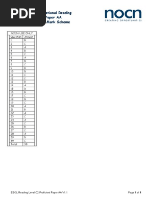 Nocn Esol International Listening Level C2 Proficient Sample English Reading Examination Level Pdf Document