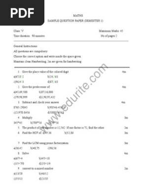 Class 5 Icse Maths Sample Papers Term 1 Model 2 Pdf Mathematical Concepts Elementary Mathematics
